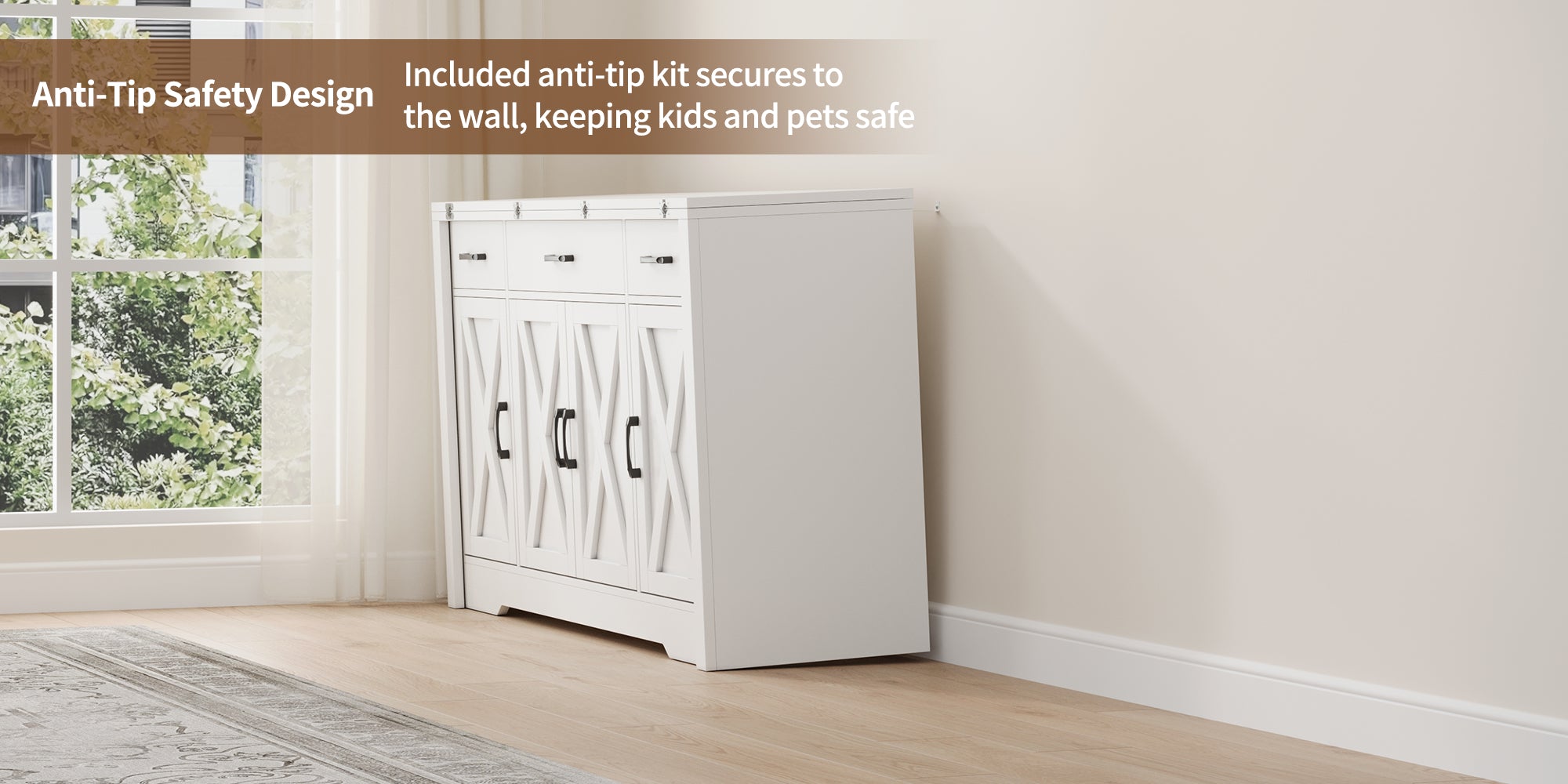 15"–30" Expandable Sideboard with 3 Drawers, White