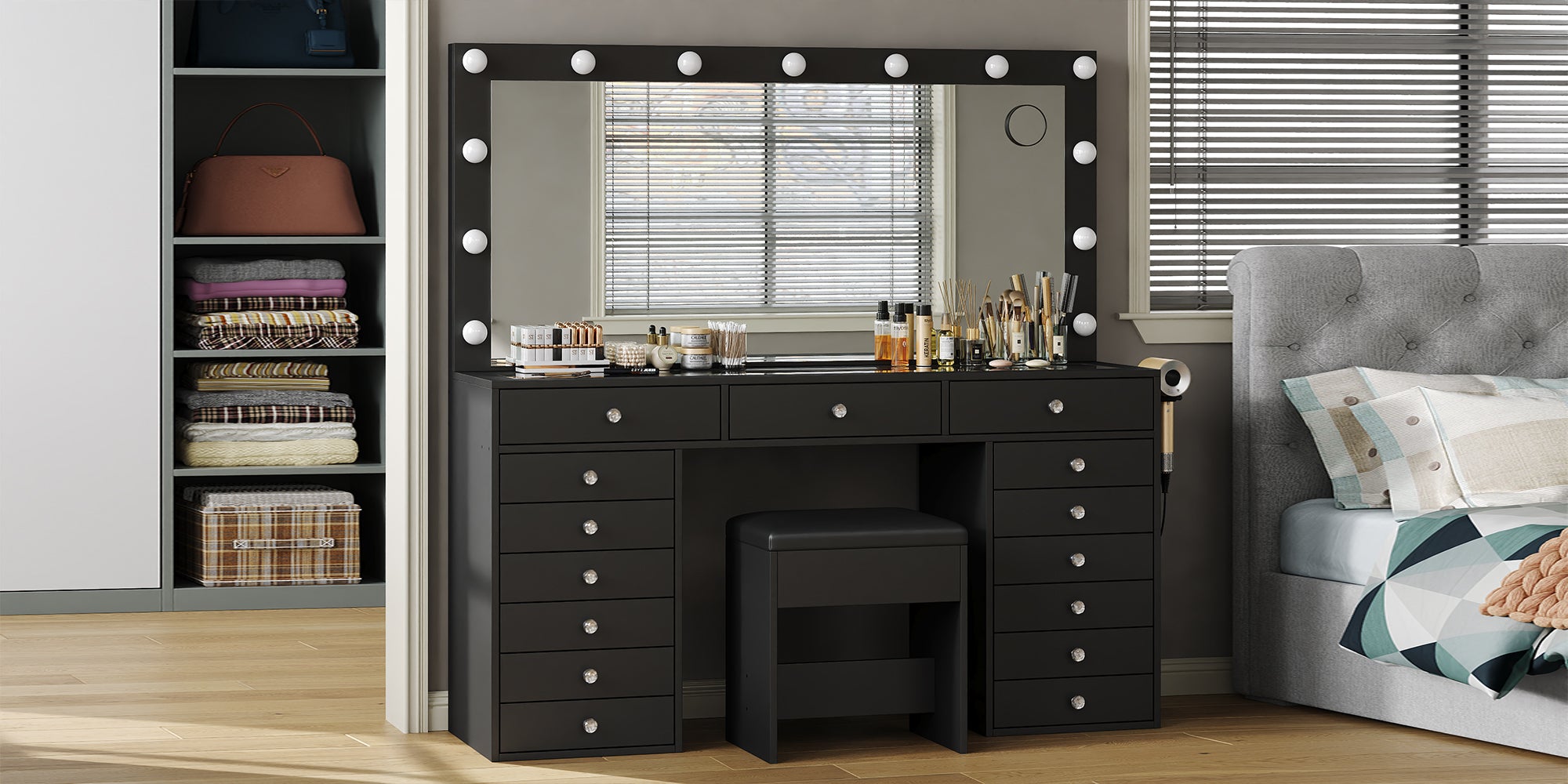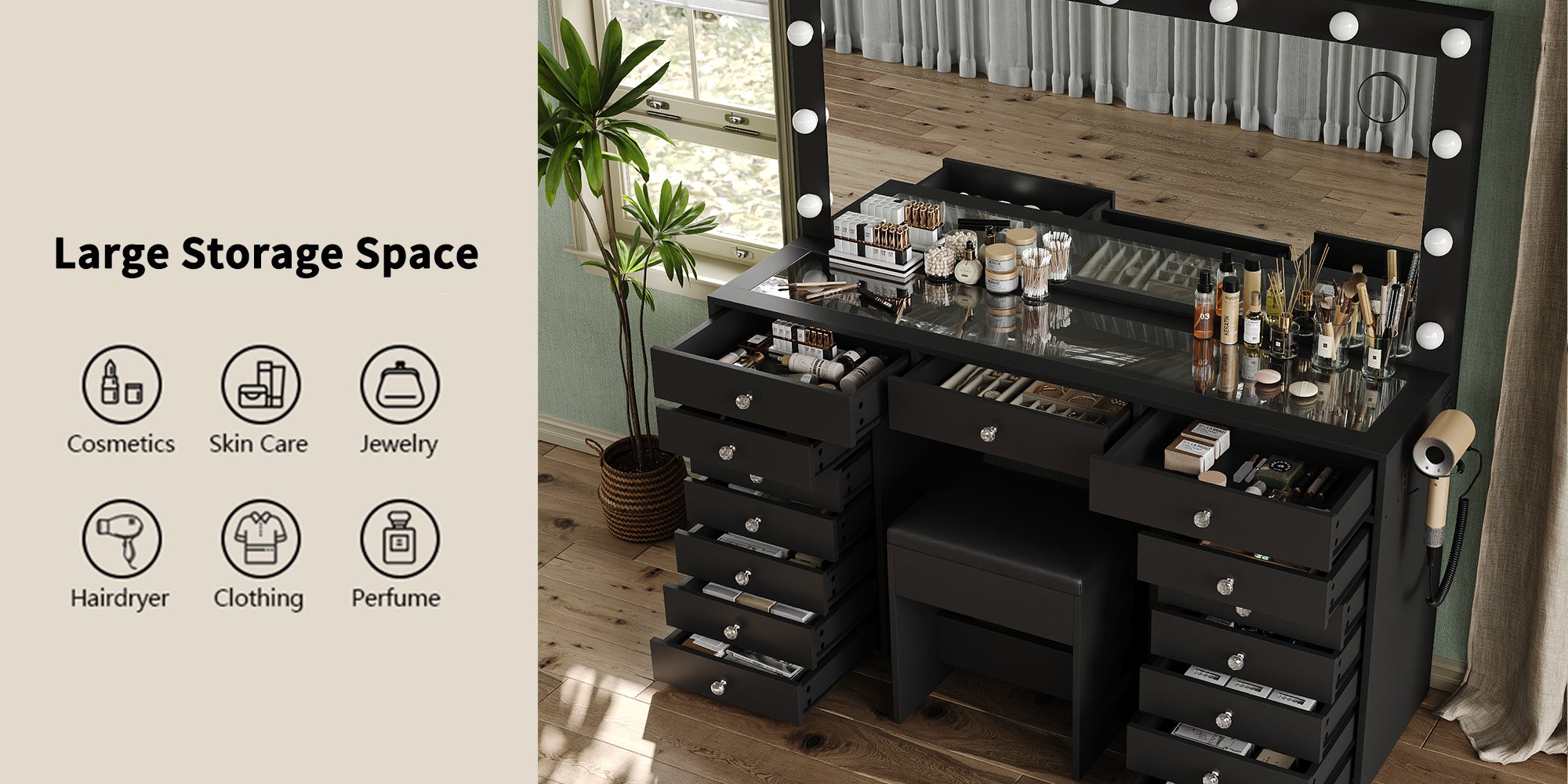 Yanosaku VD017 Bedroom Makeup Vanity desk with LED Mirror, 15 Drawers - Yanosaku SotreFurnitureVD017 - WH