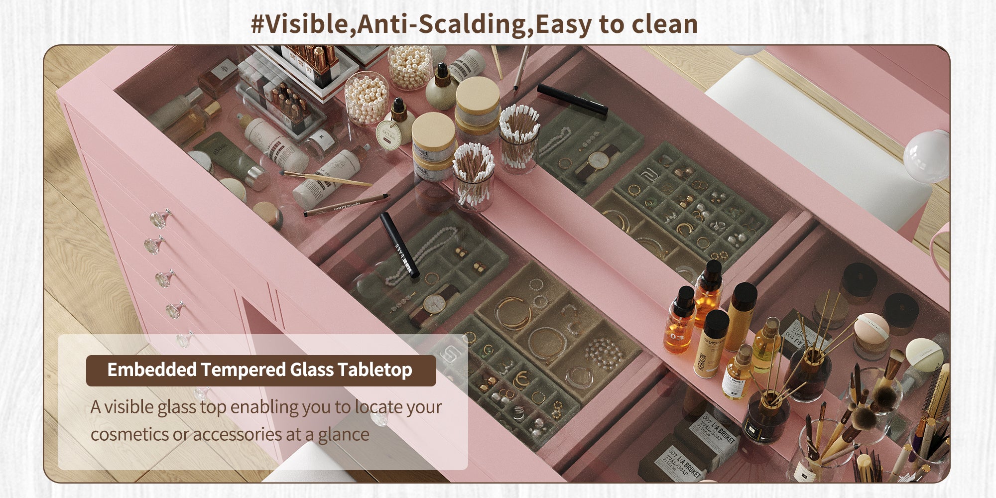 Die glatte Oberfläche von MDF ermöglicht eine einfache Reinigung und Pflege, sodass Ihr Schminktisch oder Ihre Kommode mit minimalem Aufwand lange schön bleibt. Es ist perfekt für den täglichen Gebrauch und stilvoll genug, um jeden Raum aufzuwerten.