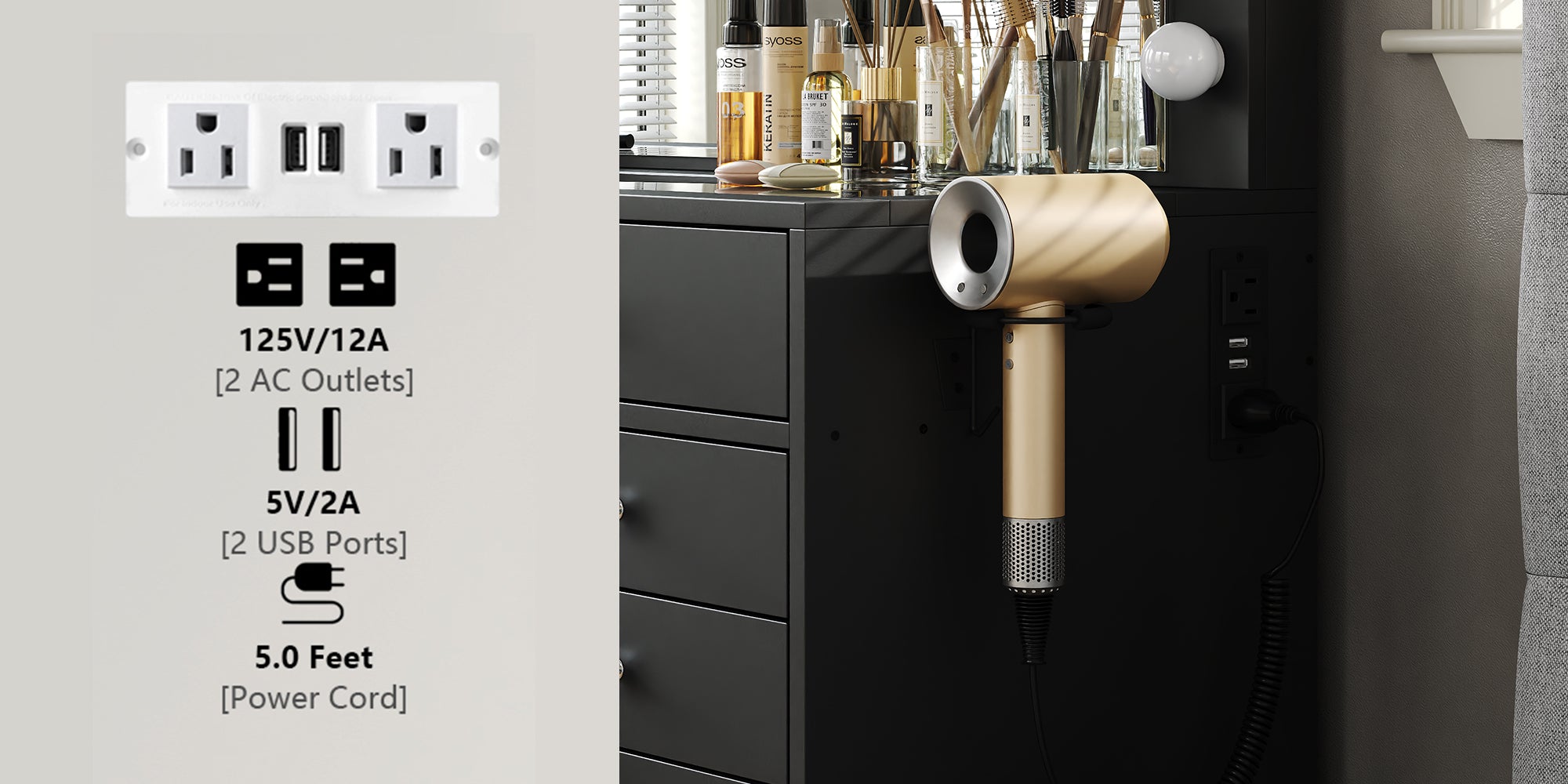 Schminktisch mit Ladestation: Dank der Steckdosen mit 2 Standardsteckdosen und 2 USB-Anschlüssen bleiben Sie immer verbunden und mit Strom versorgt. Ideal zum Aufladen von Föhn, Lockenstab, Smartphone, Tablet oder Laptop – mit diesem Schminktisch gelingen Ihnen tolle Selfies oder Sie arbeiten produktiv, während Sie sich stylen.