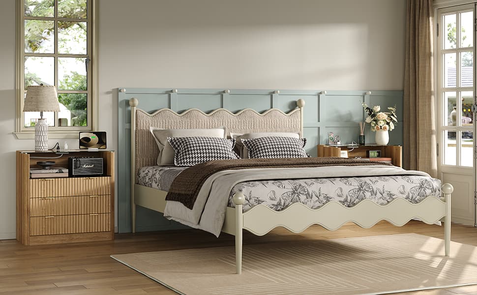 Vektaya US-BF009-WH Queen/King Bed Frame 6 Drawers,Headboard,Lights,Charging,White.