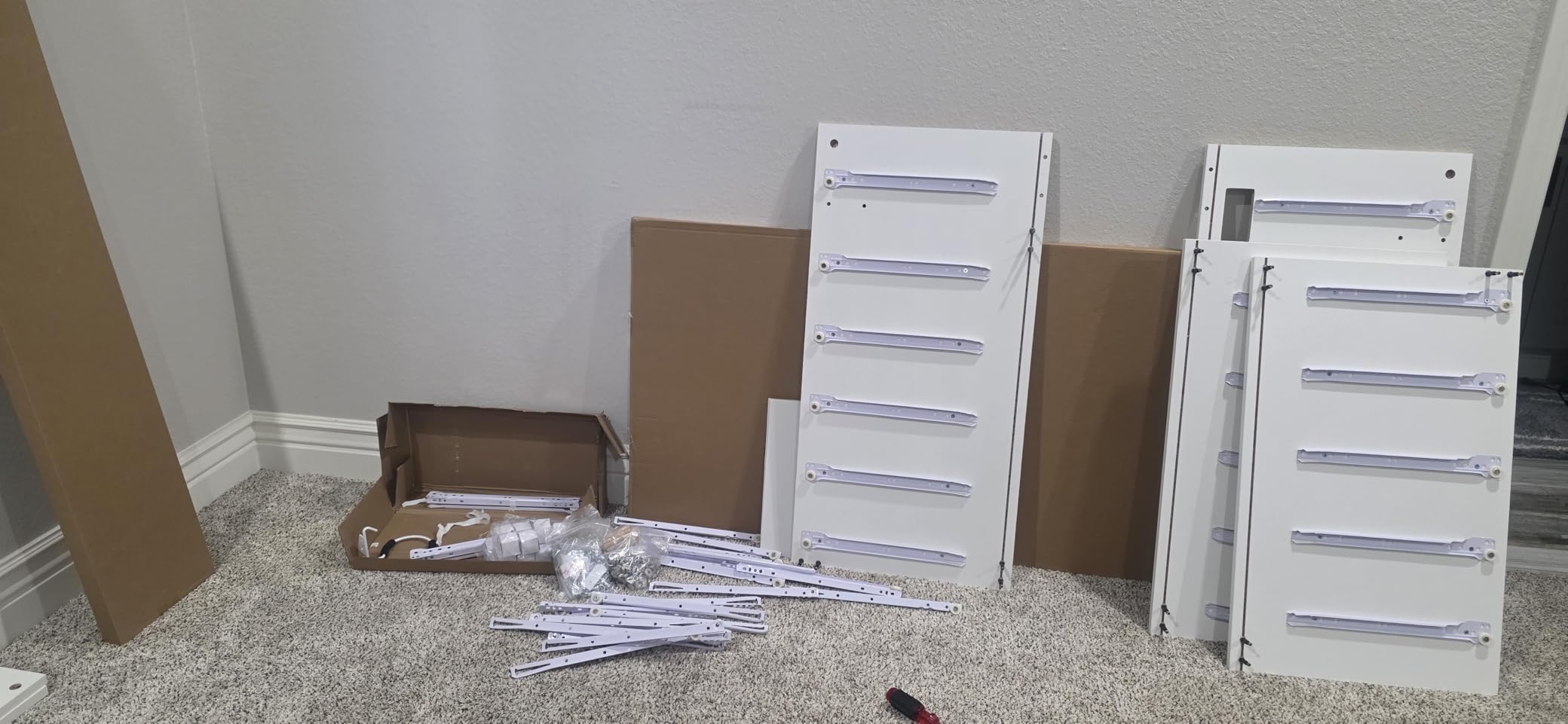OH MY FING GAWD. THIS THING COMES WITH TEN MILLION PIECES AND A BAG OF SCREWS THAT WEIGHS DARN NEAR 10 LBS. GOOOD FING LUCK PUTTING IT TOGETHER. My most valid crashout has been over building this stupidddd vanity!!!!!!
