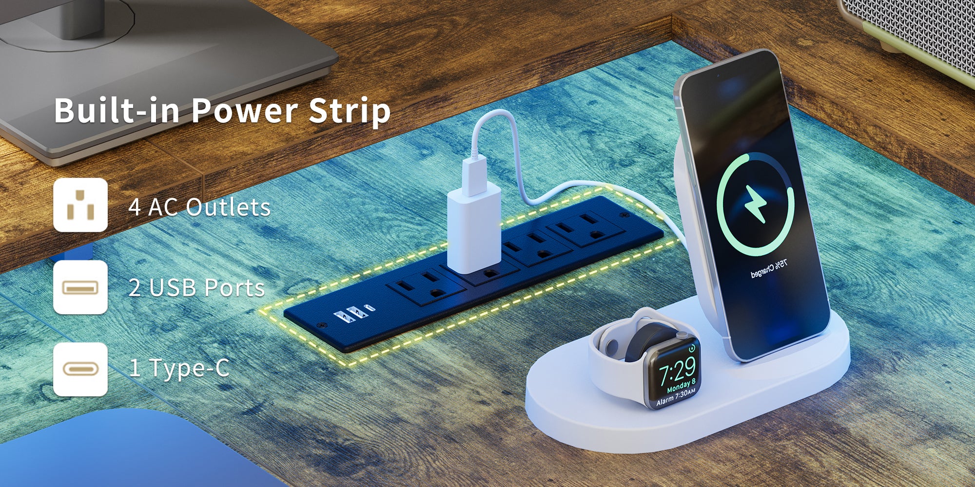 Features 4 outlets, 2 USB ports, Type-C charging. RGB LED light with multiple color modes creates perfect ambiance for gaming or work.
