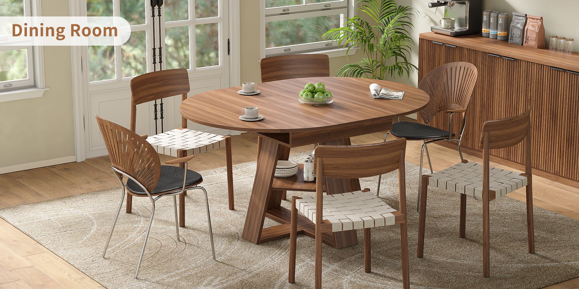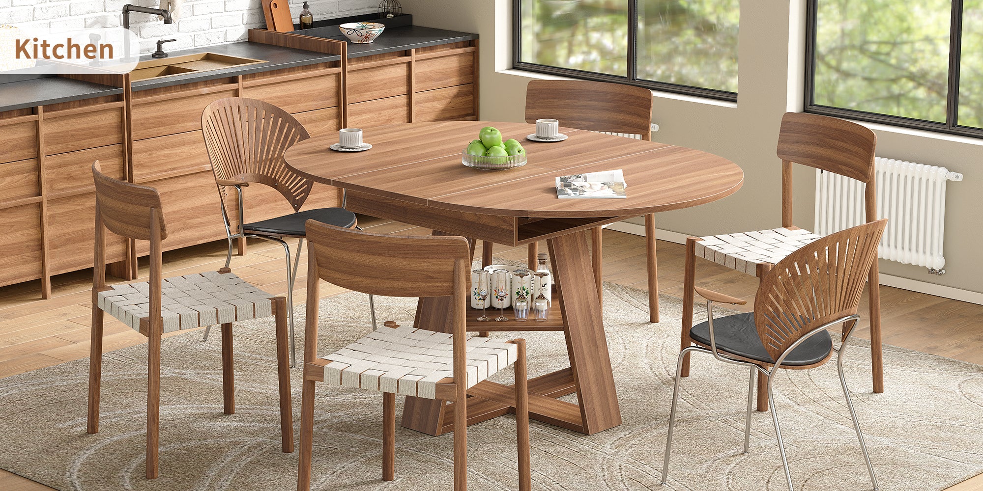 Compact Round to Spacious Oval: Effortlessly expand from 43.3" round to 59" oval with a smooth metal glide, seating 4–8 for family meals or gatherings.