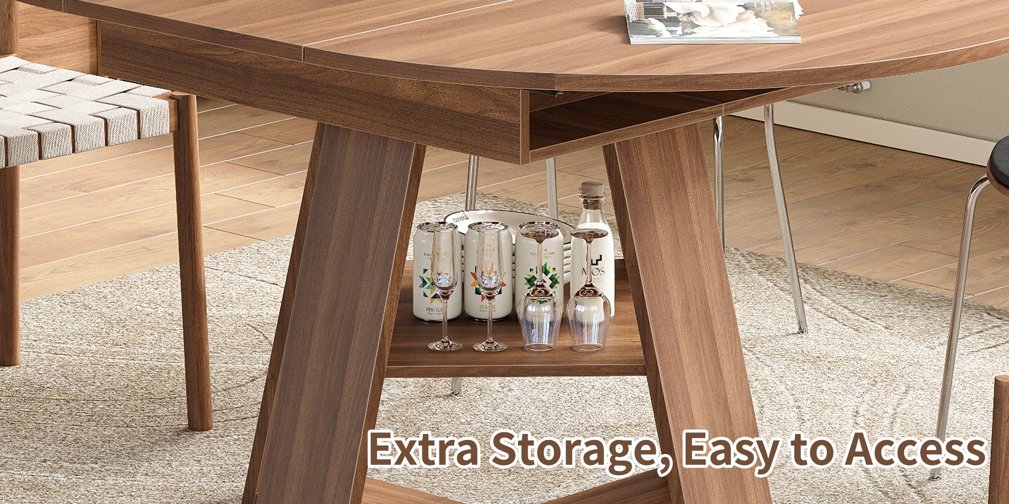 Vektaya DT005-WA 43.3"–59" Extendable Dining Table with Storage, Rectangular Table