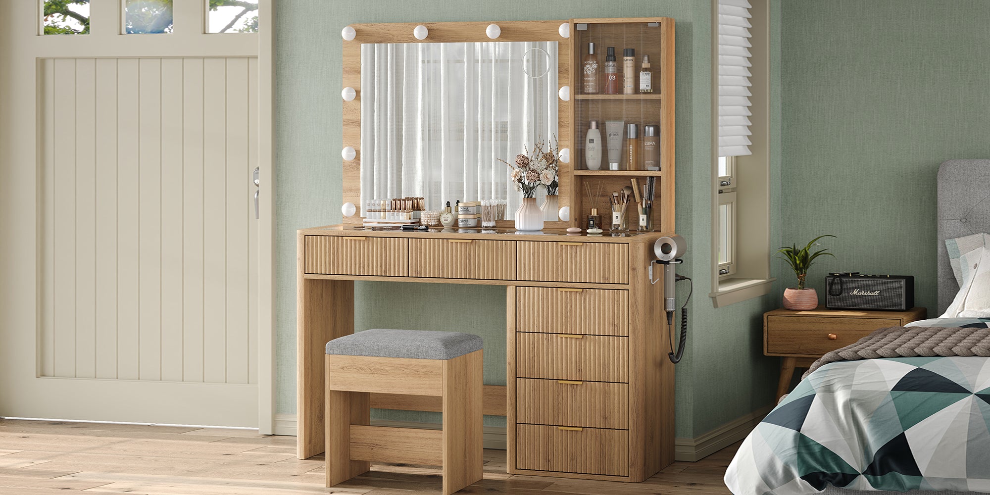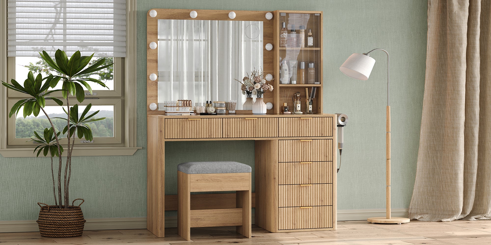 Stylish Design : The unique fluted panel design enhances the sense of space, and it will inject vitality and brilliance into your space. This makeup table will be an ideal gift for women of all ages, it's sure to delight your girlfriend, wife, mother, or daughter